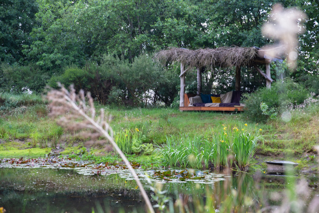 Relaxruimte bij het zwemmeer van het retraitecentrum